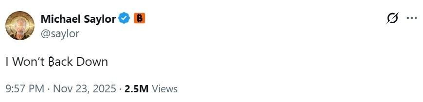 数据显示,MicroStrategy在整个11月仅增持了9,062枚比特币,较去年同期134,480枚的购买量暴跌93.26%。尽管Saylor本人在社交媒体上引用"I Won't ₿ack Down"的歌词表明决心,但这份沉默依然在市场中引发了诸多猜测。一位加密货币分析师评论道:"市场已经习惯了MicroStrategy每周的'打卡',当这种可预测性突然消失时,尤其是在市场下行期,投资者的焦虑情绪会立即被放大。"截止发稿,公司股价较高点回撤约 70%,但依然是全球持币量最大的上市公司,累计持有 649,870 BTC,市价仍比其资产净值溢价约 1.2 倍。