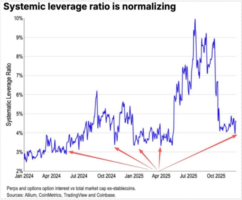 在1011下跌中ETH的期货杠杆盘被充分清理,最后已经杀到现货的杠杆盘,同时很多对ETH信仰不足,导致这很多远古OG纷纷减仓逃跑。根据Coinbase数据,币圈的投机杠杆已经降到历史低位区域4%。