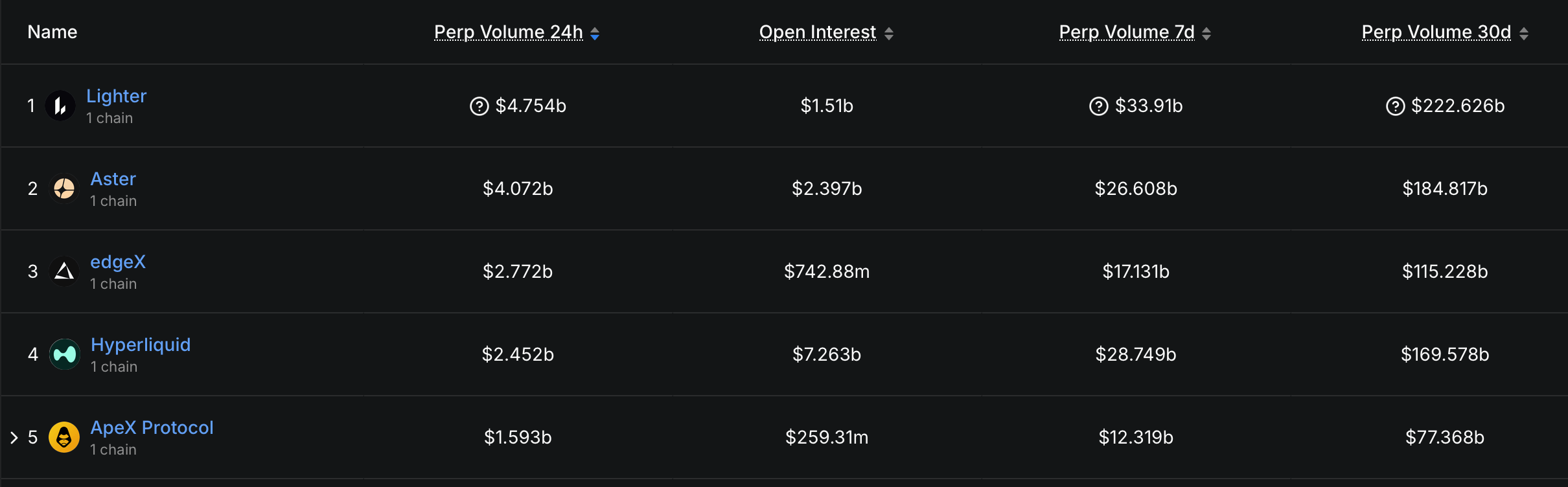 Hyperliquid 的成功吸引了激烈的竞争。像 DYdX 和 GMX 这样的成熟去中心化衍生品平台仍然活跃,而新一代的永久 DEX 则推出了以激励为重的策略,旨在捕获交易量。